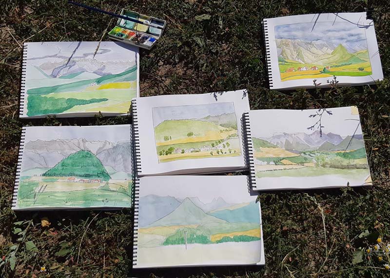Au programme le centre ville pittoresque et ses maisons paysannes, la halle bien sûr, Bombyx une usine du XIX° transformée en lieu associatif et enfin le domaine des Hautes-Glaces, la distillerie de Whisky du Trièves, un lieu magnifique. Cela a permis aux stagiaires de se confronter à des situations diverses, et d'apprendre les fondamentaux de la perspective.