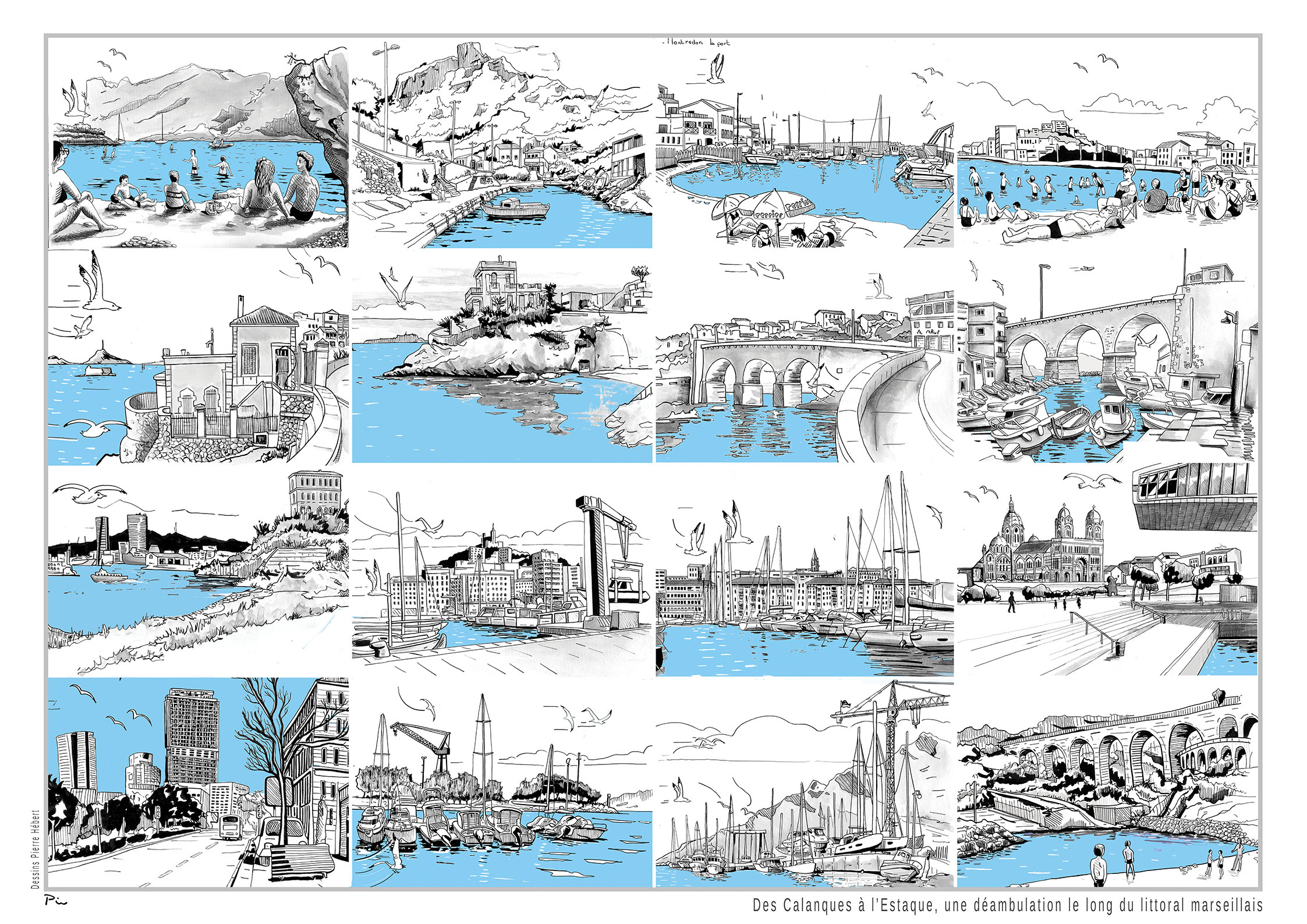 J'ai réalisé un poster A2 qui représente dans une mosaïque des lieux emblématique (ou marquant ou emblématiques !) du littoral Marseillais.